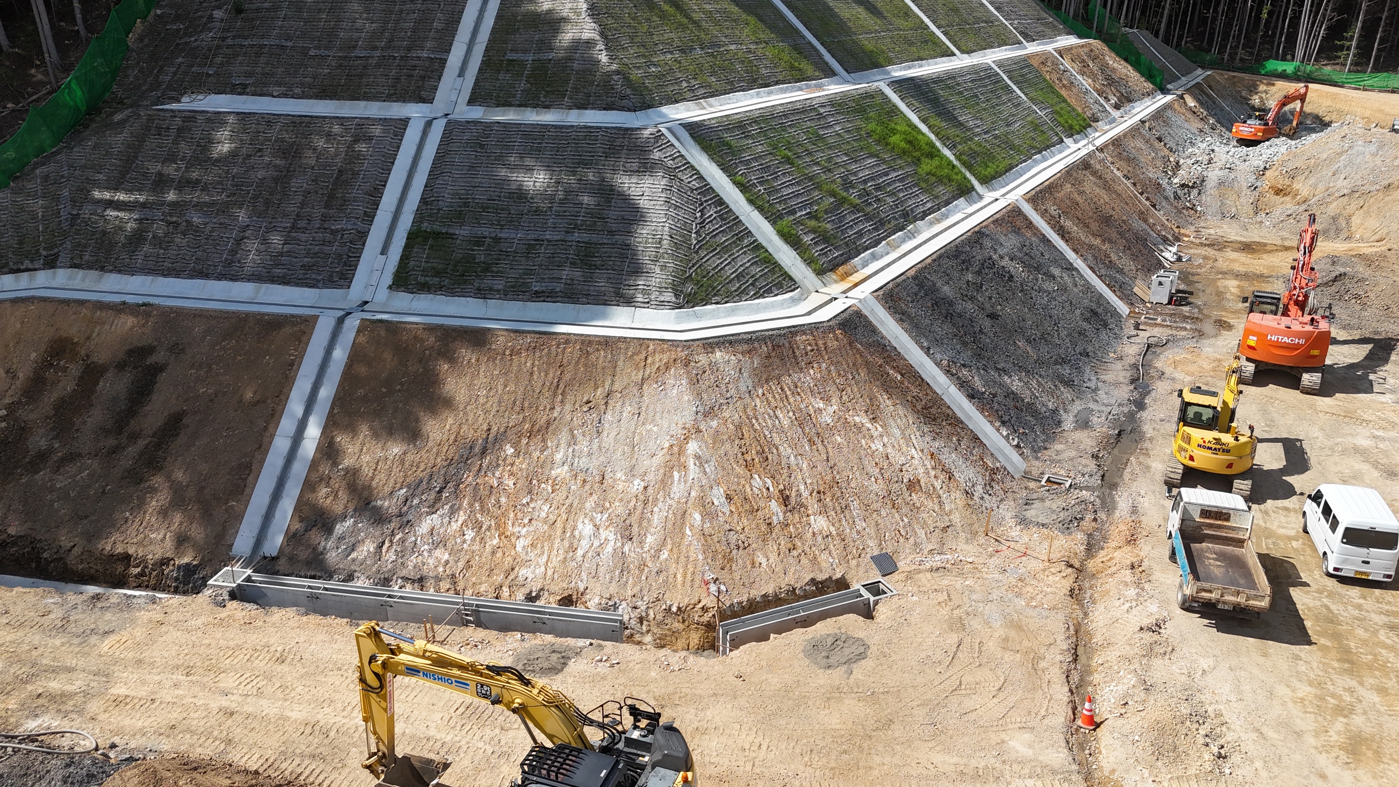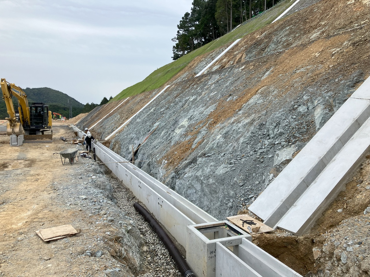 法面下の雨水排水溝を設置しています
