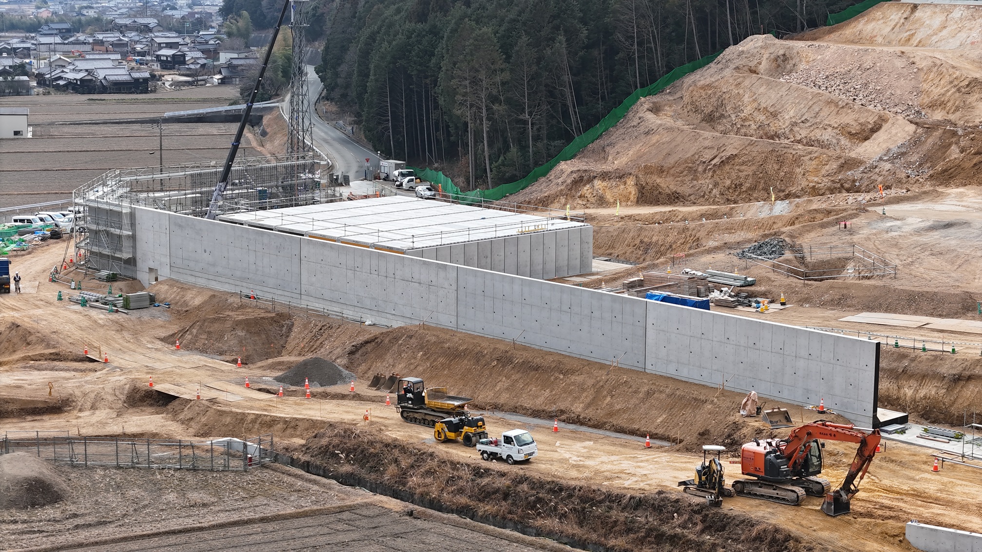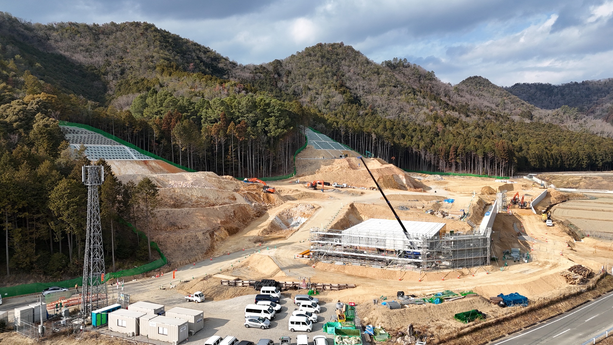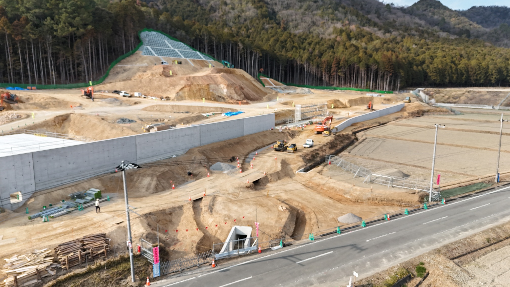 現在、敷地造成工事を行っています。工期及び施工者は以下のとおりです。 工 期:「令和6年3月29日~令和7年11月28日まで」 施工者:株式会社鴻池組