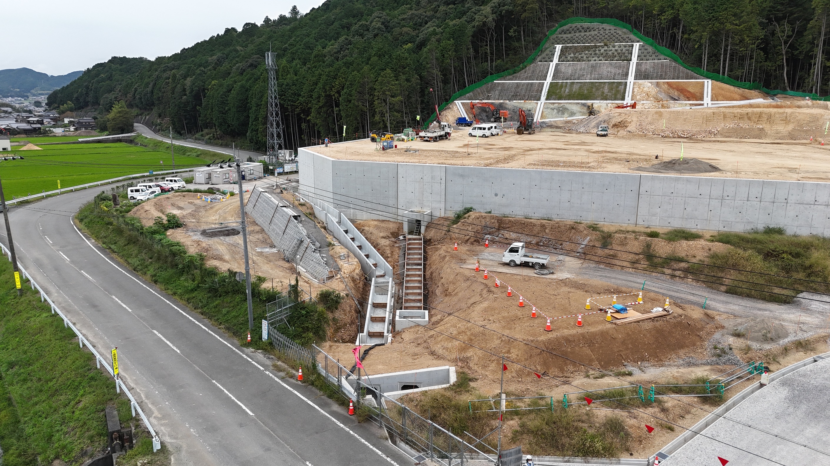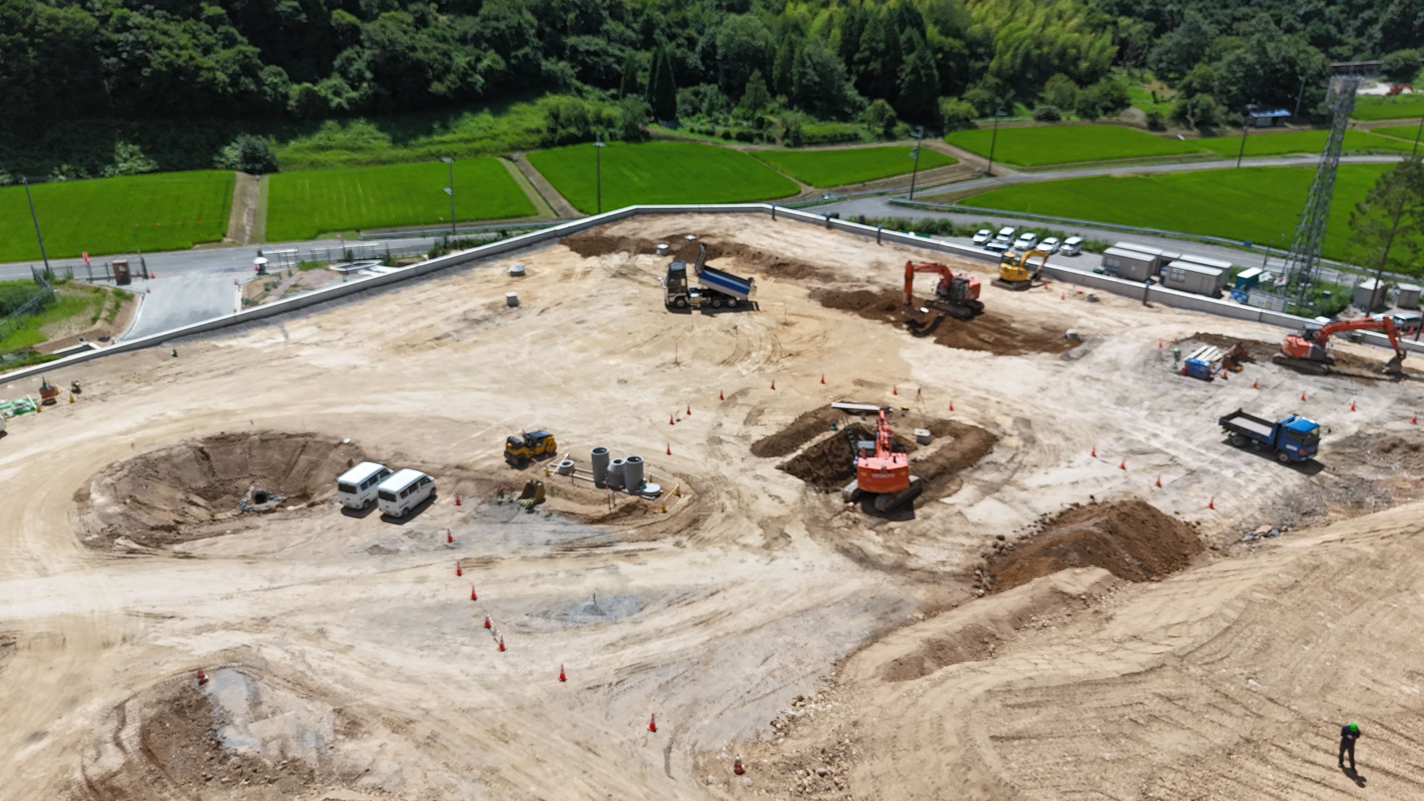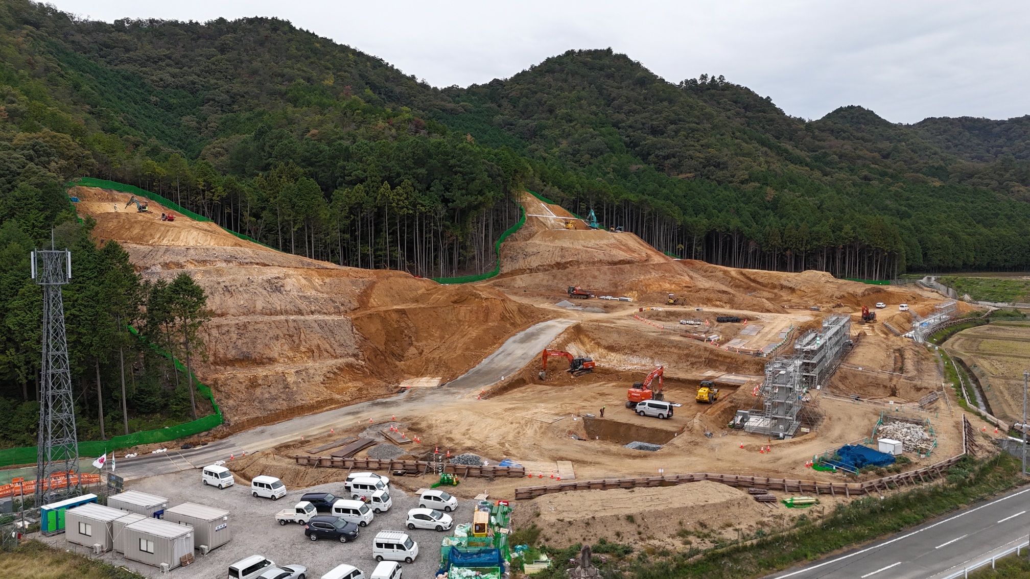 現在、敷地造成工事を行っています。工期及び施工者は以下のとおりです。 工 期:「令和6年3月29日~令和7年11月28日まで」 施工者:株式会社鴻池組